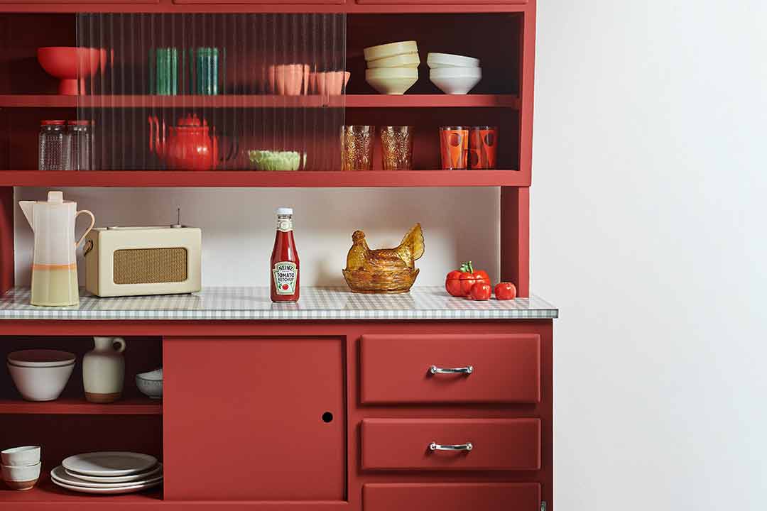 Red HTK 57 is a pigment-rich dark red that perfectly matches the mouth-watering colour of Heinz tomato ketchup. With its dark undertones, this tasty hue is surprisingly versatile and sure to create a statement.